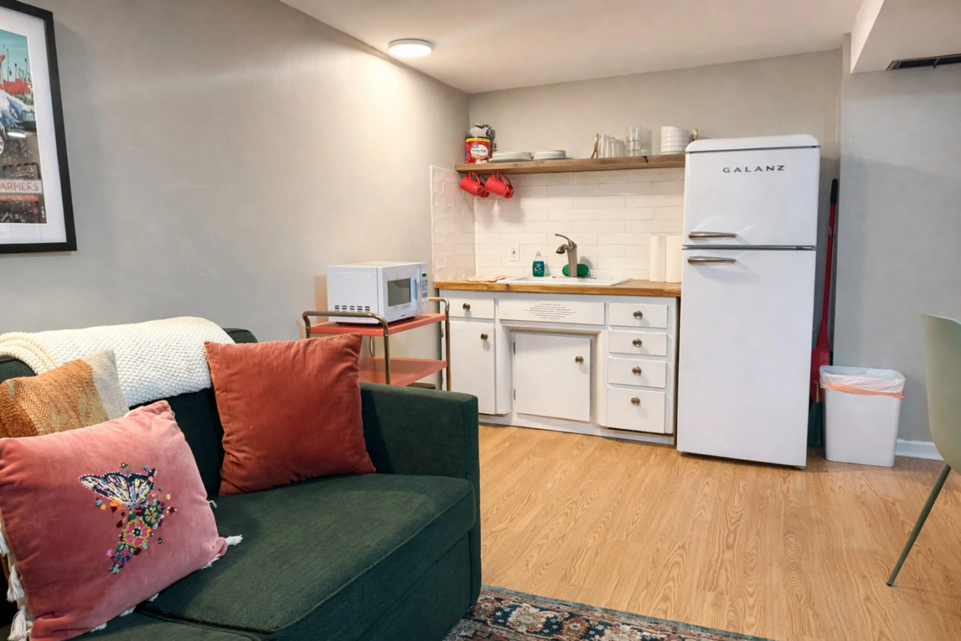 Loved this cozy spot! Super comfy bed and the sitting room is great for playing games and sipping coffee. It’s also walking distance to lots of fun shops and restaurants/bars. We had a great time and would stay here again!